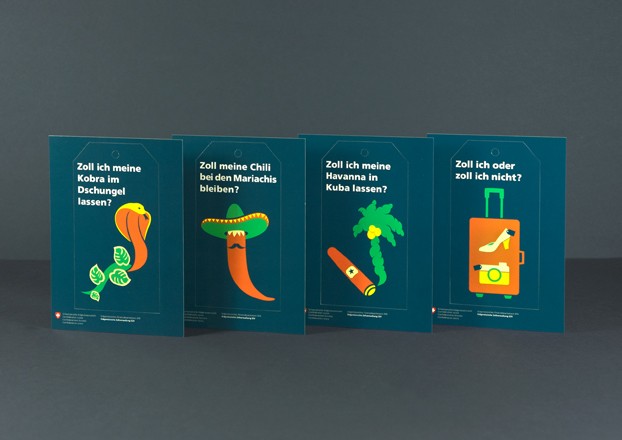 Im Vordergrund steht das Spiel mit dem Klischee: Eyecatcher-Illustrationen und plakative Slogans treiben die komplizierte Zollsituation auf die Spitze. Die Auflösung liegt dann auf der Hand, sprich wenn man das Smartphone zückt: Denn «Die Zoll-App gibt Auskunft».Im gleichen Rahmen entstand das App-Icon, welches von der eidg. Bundeskanzlei beauftragt wurde. Es bildet fortan die Basis für zukünftige App-Icons von Bundes-Applikationen.
