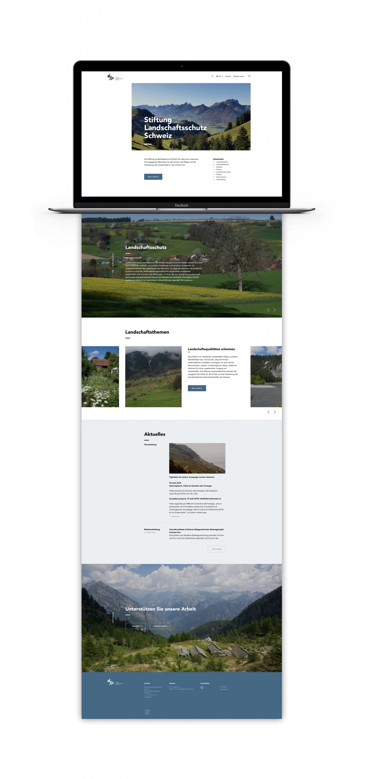 zur WebsiteDer Kunde wünschte sich einen visuellen Auftritt, der die vielen Wirkungsbereiche der Stiftung Landschaftsschutz Schweiz adäquat repräsentiert und zugänglich macht. Die Inhalte sollten neu strukturiert, intelligenter miteinander vernetzt und wirkungsvoll inszeniert werden. Die Stiftung erhielt einen prägnanten Onlineauftritt mit hoher Usability und effizienten Arbeitsabläufen für sein Contentmanagement.